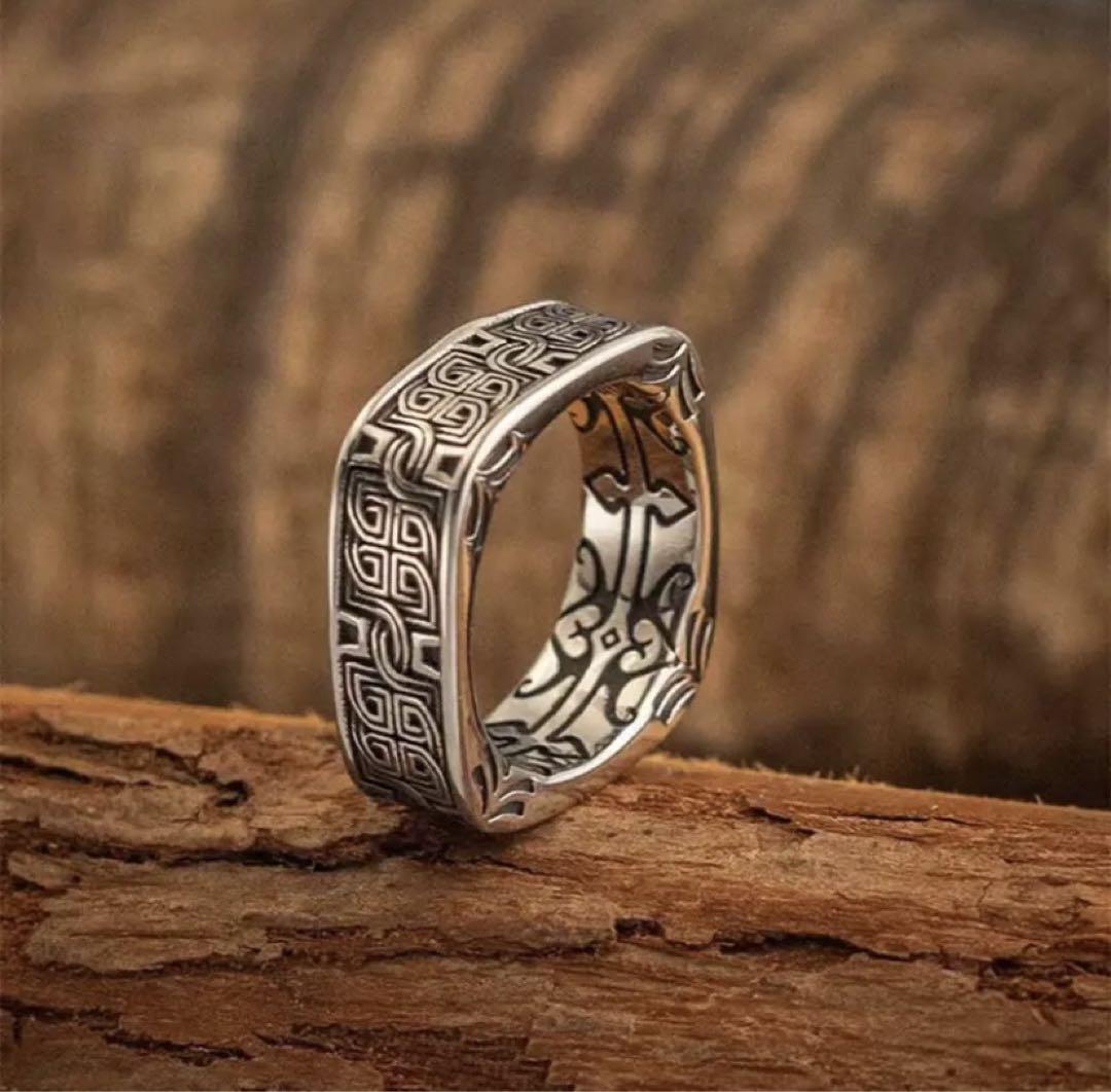> 923★新品未使用★メンズ シルバー リング ケルトノットスクエア型 ヴィンテージ 約18号 パンク 指輪 ロック ジュエリー アクセサリー