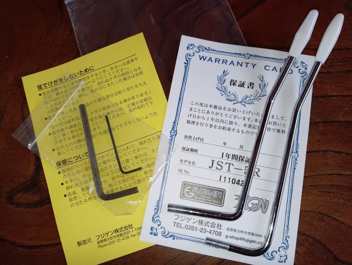 > 美品!FGN(フジゲン)〜「JSTー5R」保証書(WARRANTY CARD)、トレモロアーム&レンチ
