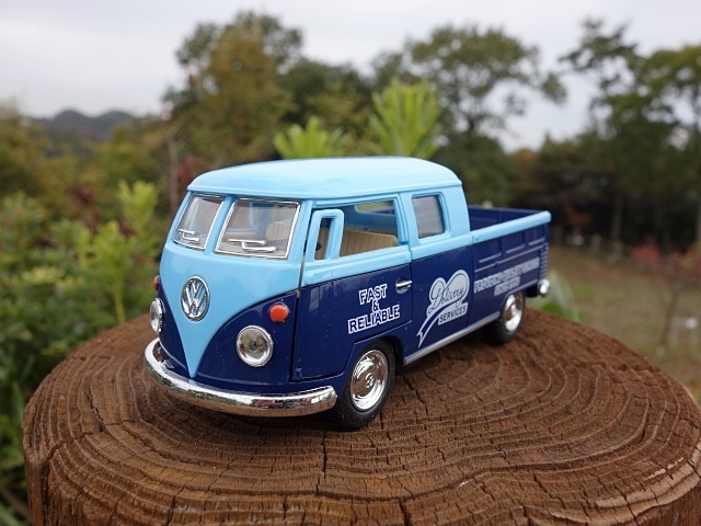 - 【送料450円】ワーゲンバス ミニカー タイプⅡ ピックアップ BL/GR 1963年式 1/34 フォルクスワーゲン VOLKSWAGEN