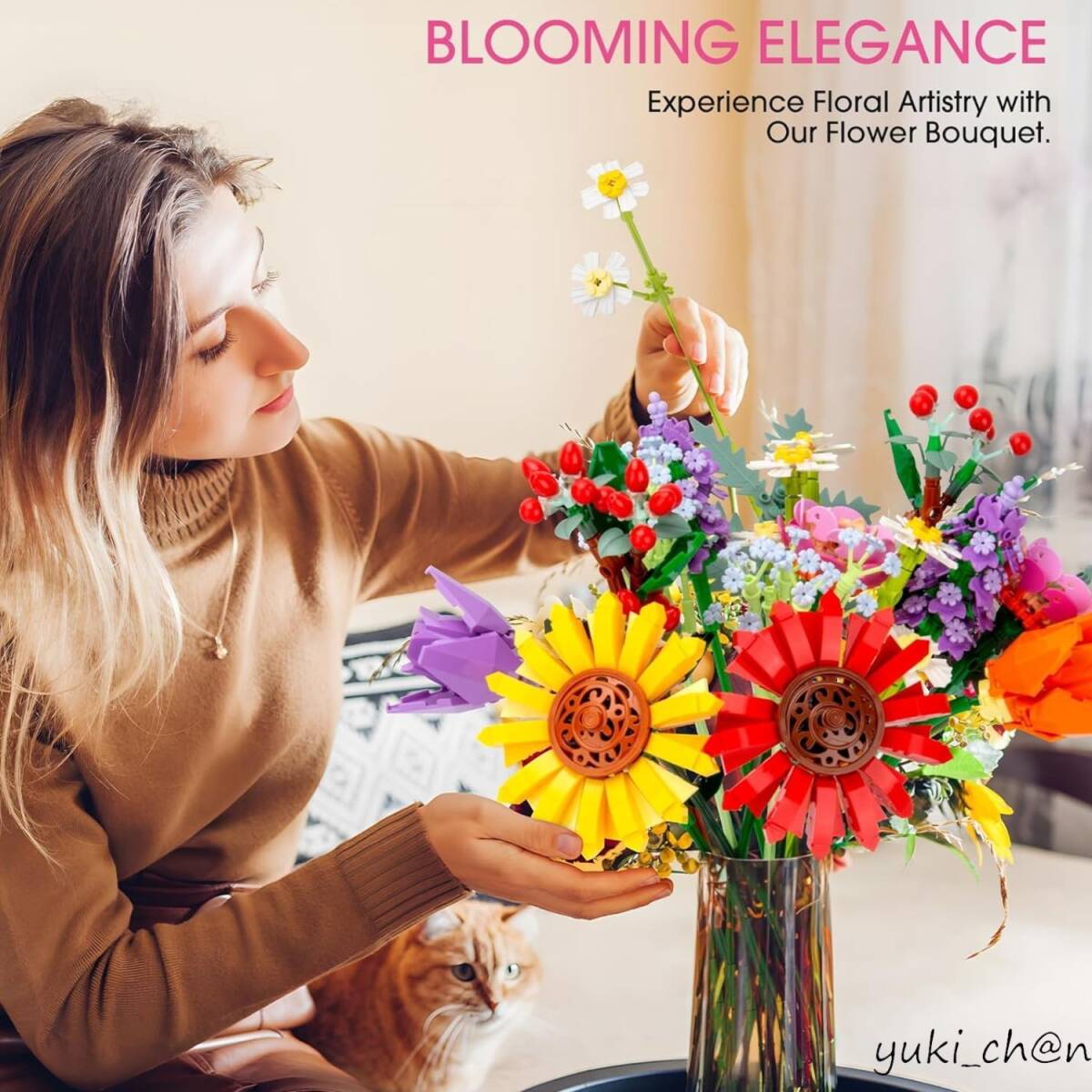 > ワイルドフラワー ブロックセット 積み木 玩具 サンフラワー 花 大人 子供向け ホームデコ ギフト 誕生日 クリスマス - 976ピース