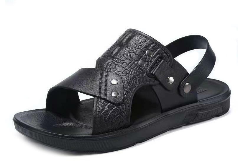 - 送料無料 匿名 クロコダイル柄 ワニ柄 スリッパ メンズ レザー ビーチサンダル ブラック