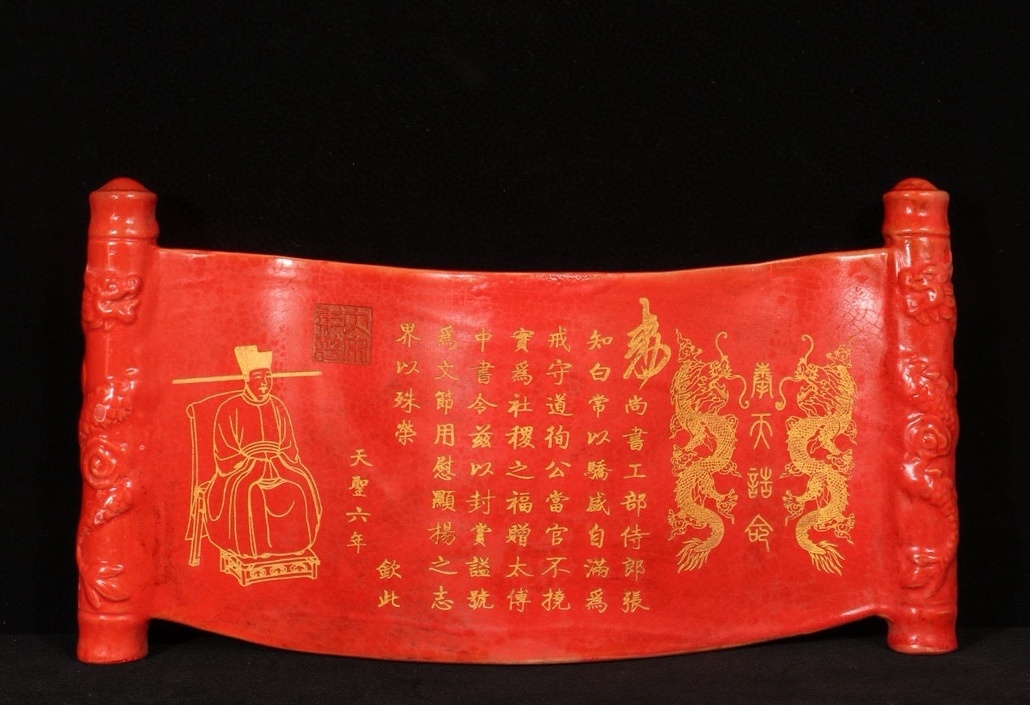- 秘藏 宋時代 官窯 双龍紋 聖旨 時代物 汝窯 唐物 陶磁器 共箱付き 中国美術 高さ4 cm 直径36.5 cm 古物保証 819
