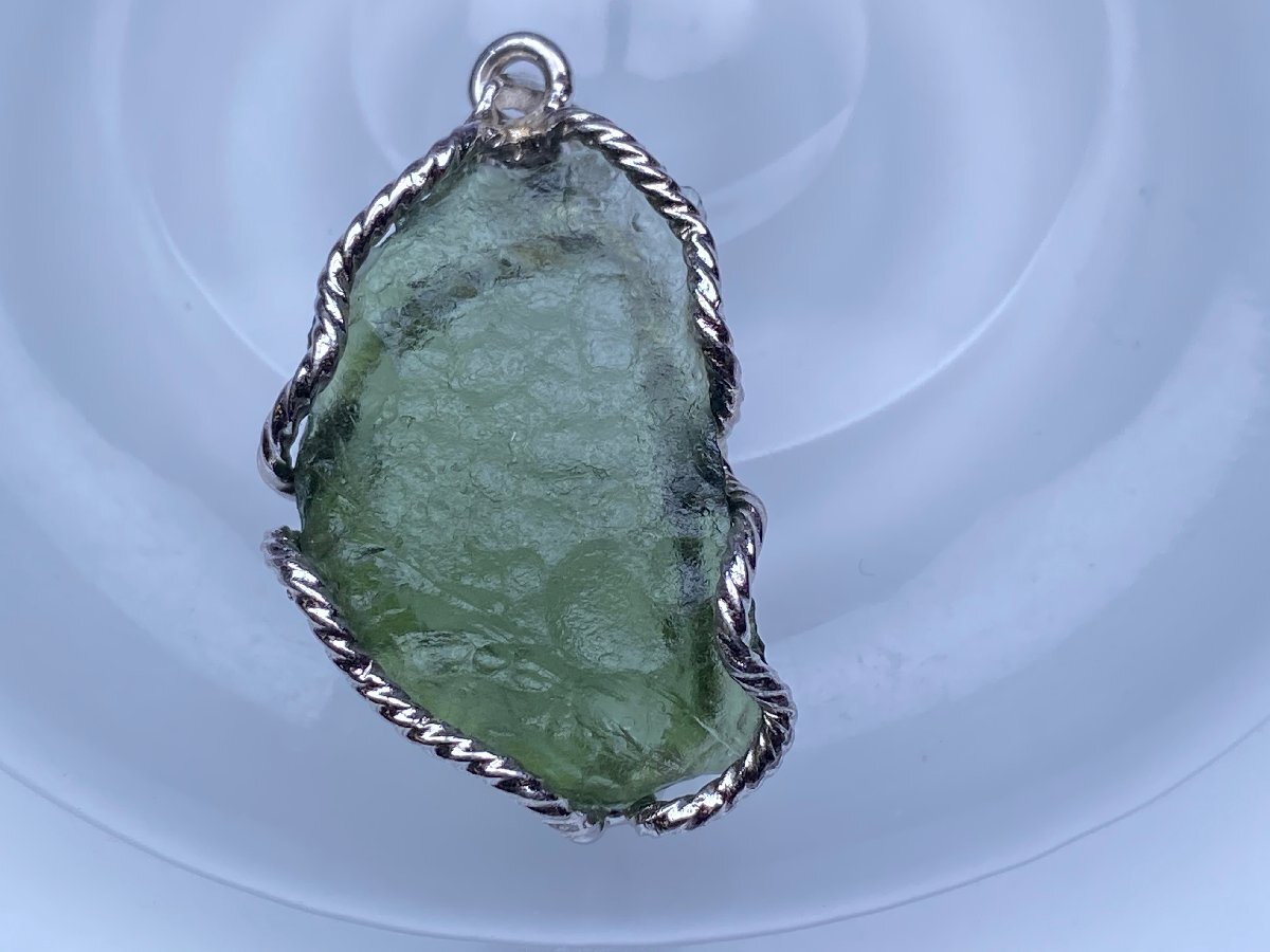 - 即決 0609J397 極美品★【モルダバイト】★&925銀 ペンダント 25.5x16x6.5mm(新品)
