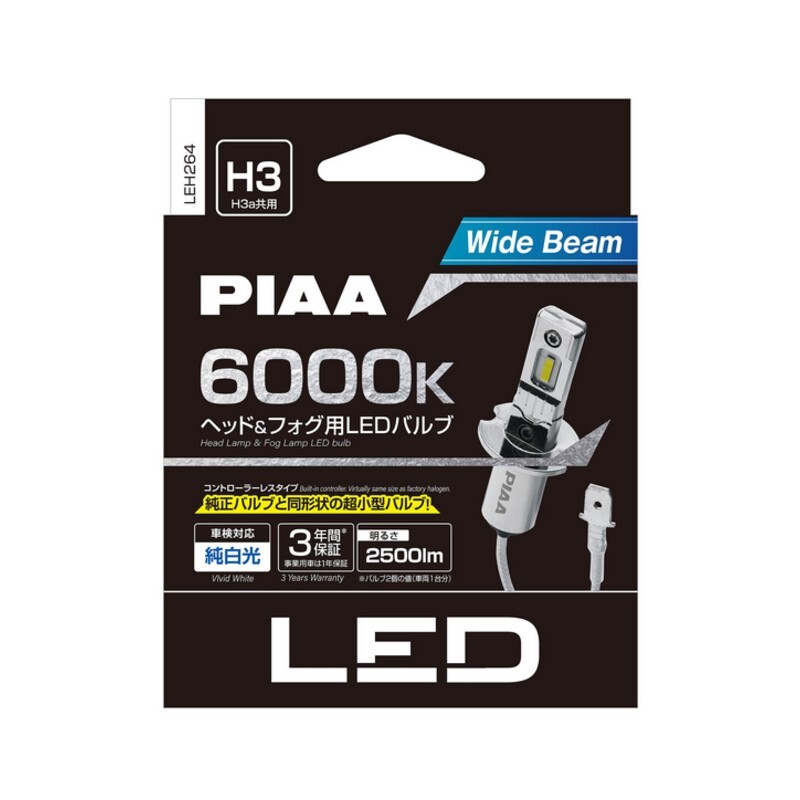 > LEH264 PIAA ヘッド&フォグ用 コントローラレスLEDバルブ 6000K H3/H3a 2500lm DC12V車用 3年保証(車検対応品)