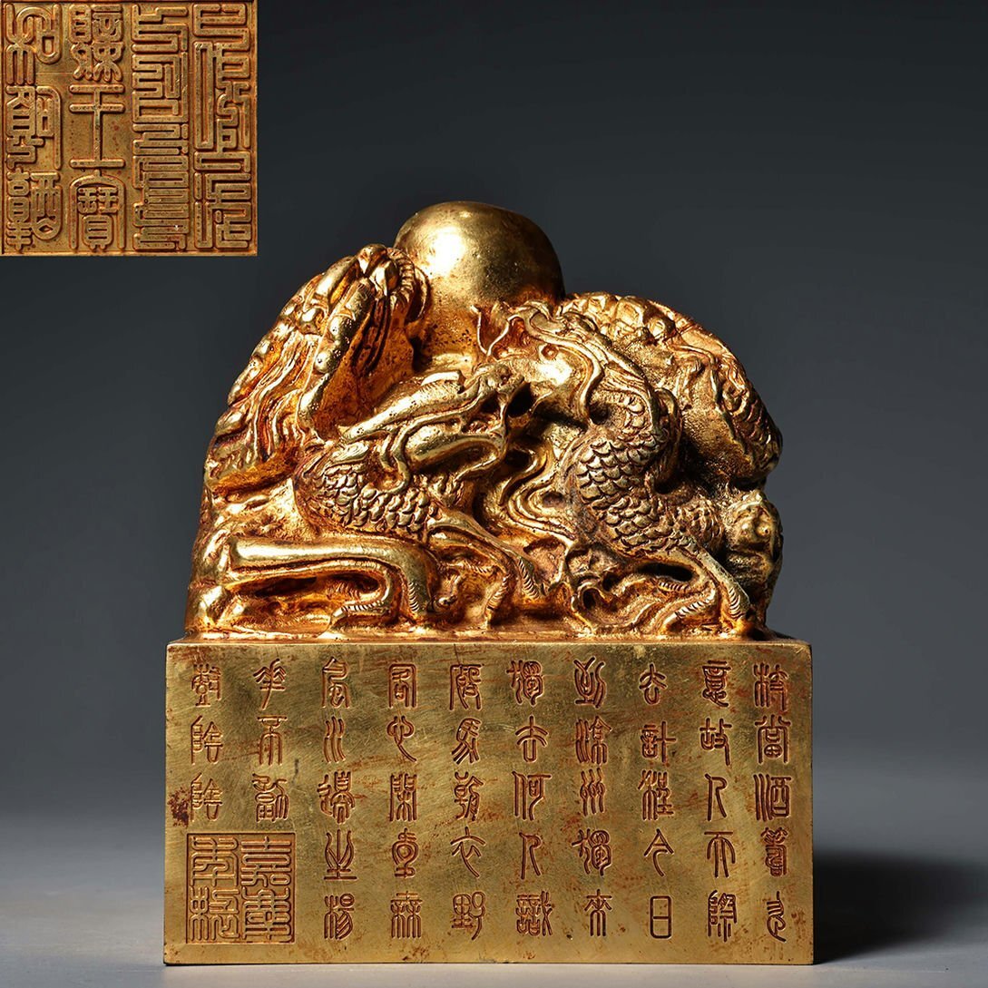- ◆羽彰・古美術◆Y0630清時代 紫銅高浮彫鏨刻塗金印章 古印章 印璽★古置物★古賞物★古擺件★蒐集家放出★唐物