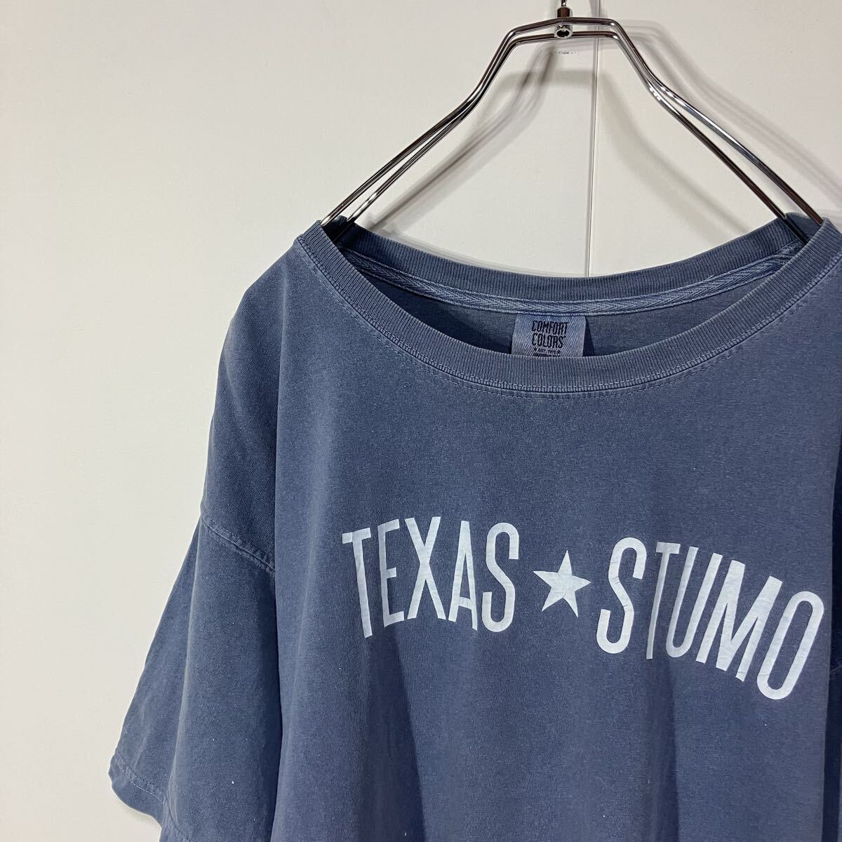 - 古着 プリント クルーネック 半袖 Tシャツ ヴィンテージ感 ブルーグレー L