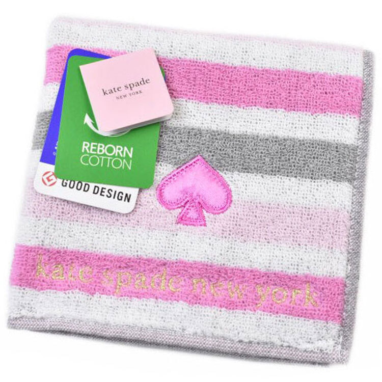 - ケイト スペード ニューヨーク タオルハンカチ 1枚 レディース ブランド ピンク グレー ボーダー スペード ロゴ