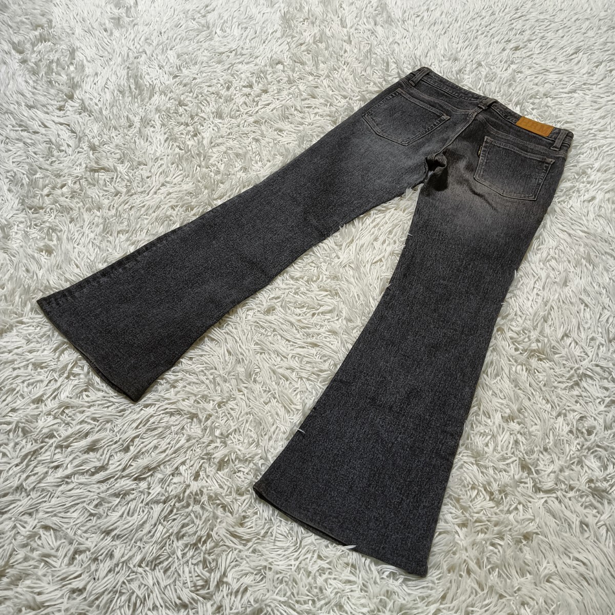 > 希少★HRM ハリウッドランチマーケット ブラックデニムパンツ ストレッチジーンズ ブーツカット フレア size28 先染め 聖林公司 古着 USED