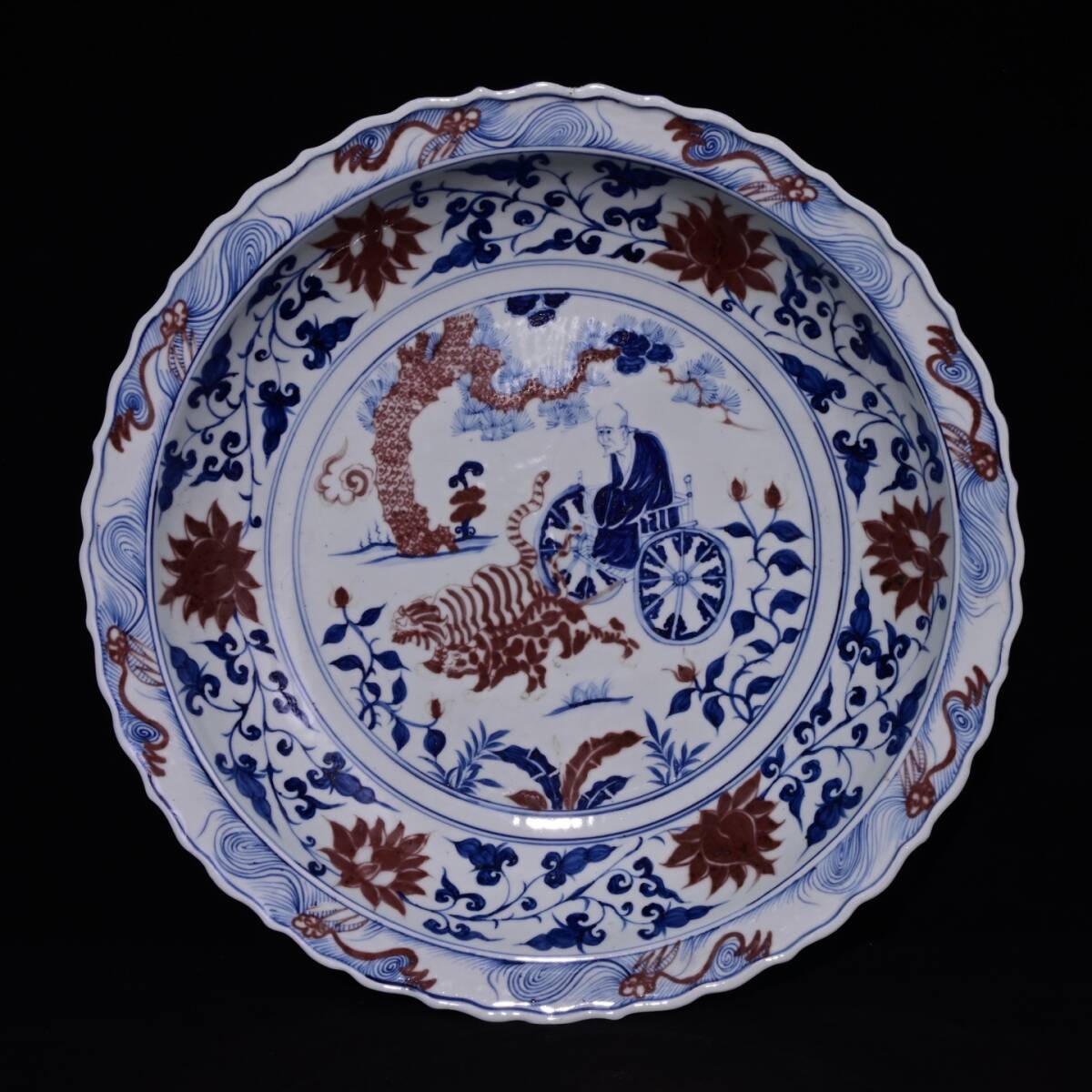 - 8+GV7080「東洋美術」 中国骨董 人間国宝 磁器製品【乾隆帝の勅額が刻まれた青白磁の赤皿】 旧物 孤品 珍品 陶磁器 収蔵価値が高い