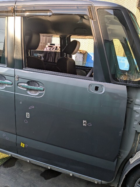 > ☆35199☆前期 NBOXカスタム JF1 JF2☆右フロントドアパネル 無限バイザー付 【NH737M】ガンメタ