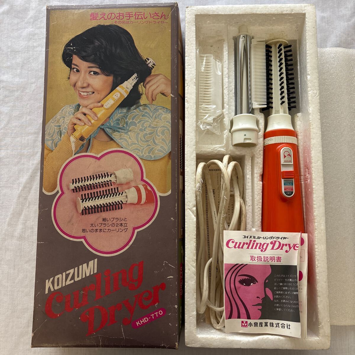 - コイズミカーリングドライヤー? 昭和家電 箱付き オレンジ 小泉産業株式会社 KHD-770? 昭和レトロ ブラシ 美容 ジャンク品 送料無料