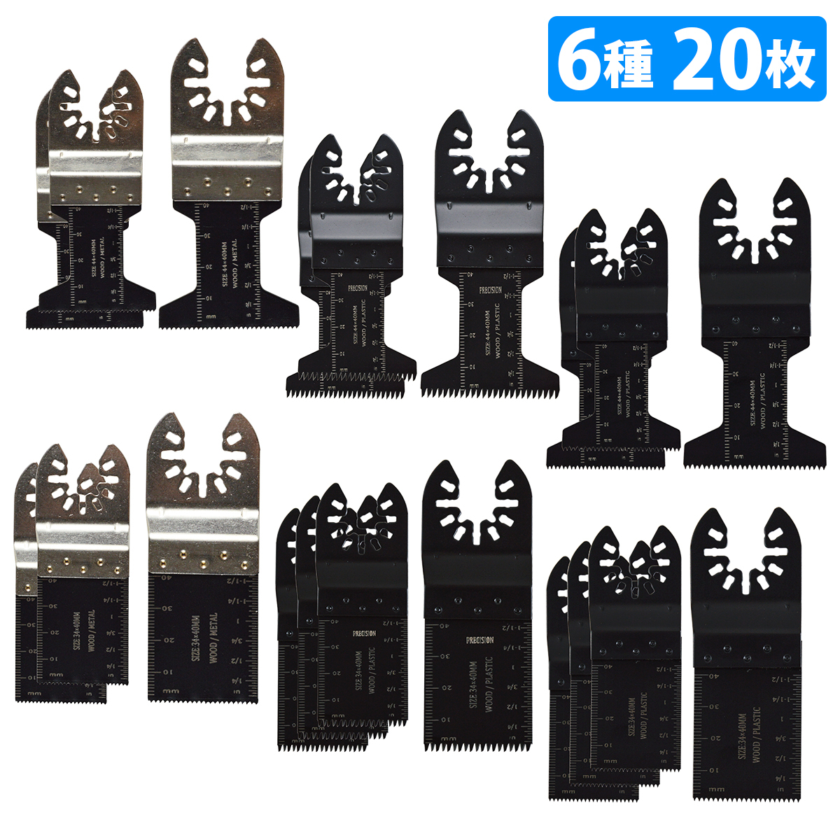 - 6種 20枚セット マルチツール ブレード カットソー 金属/木材/プラ 替刃 日立 ボッシュ マキタ ハイコーキ 替え刃 互換品