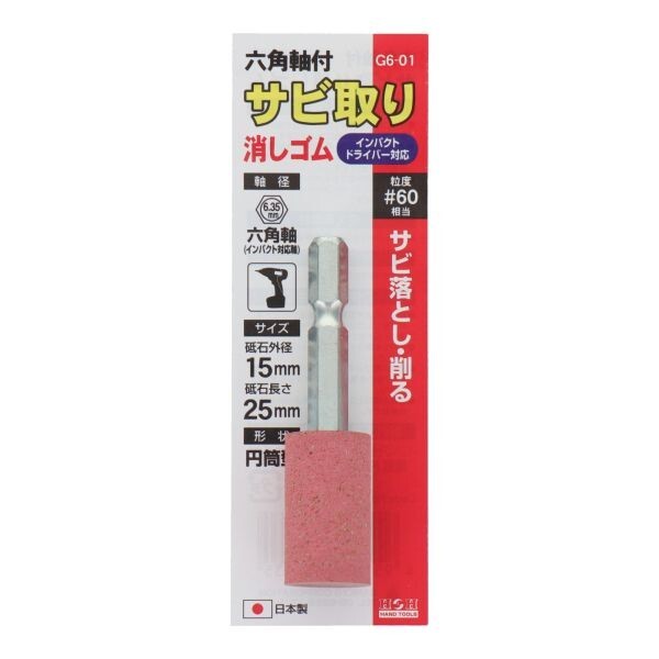 - H&H 六角軸付サビ取り消しゴム #60 外径15×長さ25mm G6-01 ※S77210