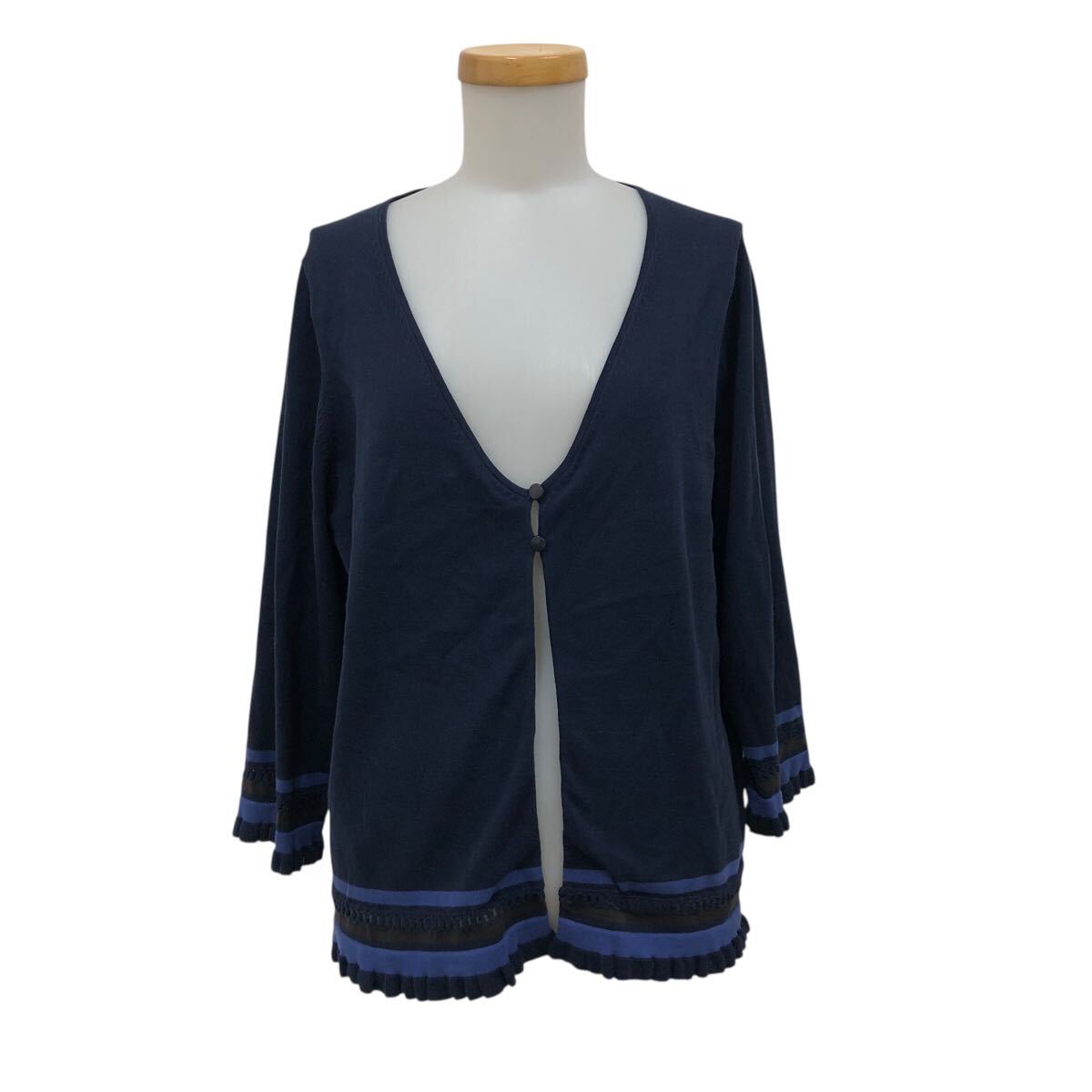 - NC315-9 Leilian レリアン 大きいサイズ ストレッチ コットン ニット カーディガン カーデ 上着 羽織り トップス レディース 13+ 紺