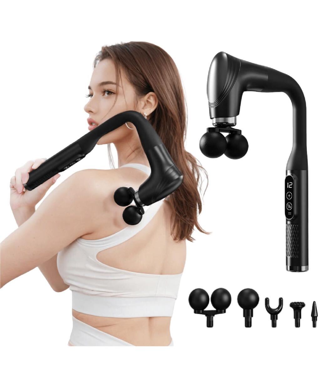 - 筋膜リリースガン ハンディガン【革新の進化・背中まで届く】 筋膜ガン 3種類モード&12段階振動 10mm深層振幅 延長設計 静音