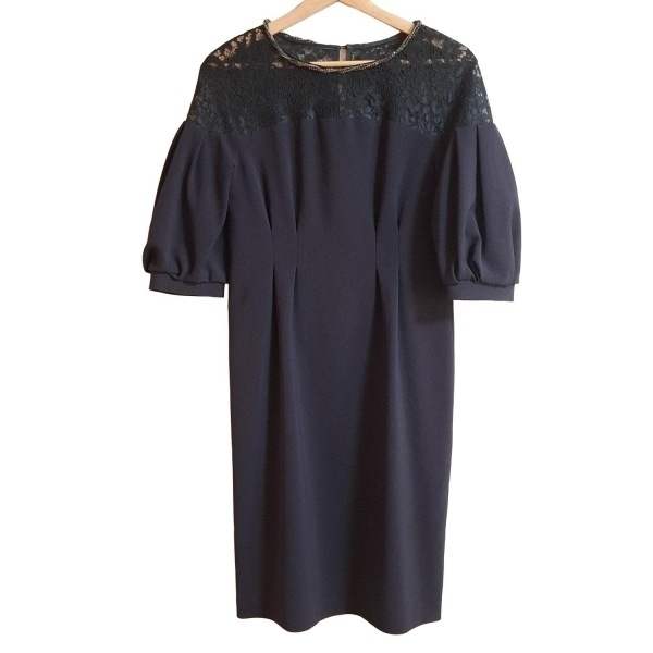 > ダイアグラム Diagram GRACE CONTINENTAL サイズ36 S - 黒 レディース 半袖/ひざ丈/ビジュー/レース/異素材切替 美品 ワンピース