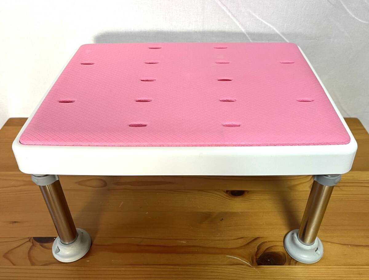 - 【S72】Richell/リッチェル/浴そう台/高さ調節付/やわらか/M型/ピンク/41×30×17.5~22㎝/中古/介護/入浴補助