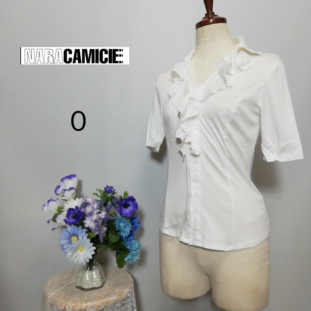 - 極上美品 ナラカミーチェ ストレッチ有 半袖ブラウス フリル Sサイズ