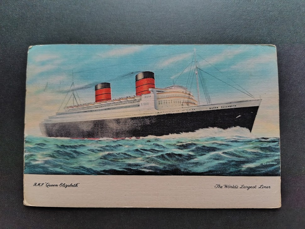 - 【使用済】ヴィンテージ 1955年 クイーンエリザベス ポストカード 絵葉書 客船 クルーズ船/R.M.S. QUEEN ELIZABETH