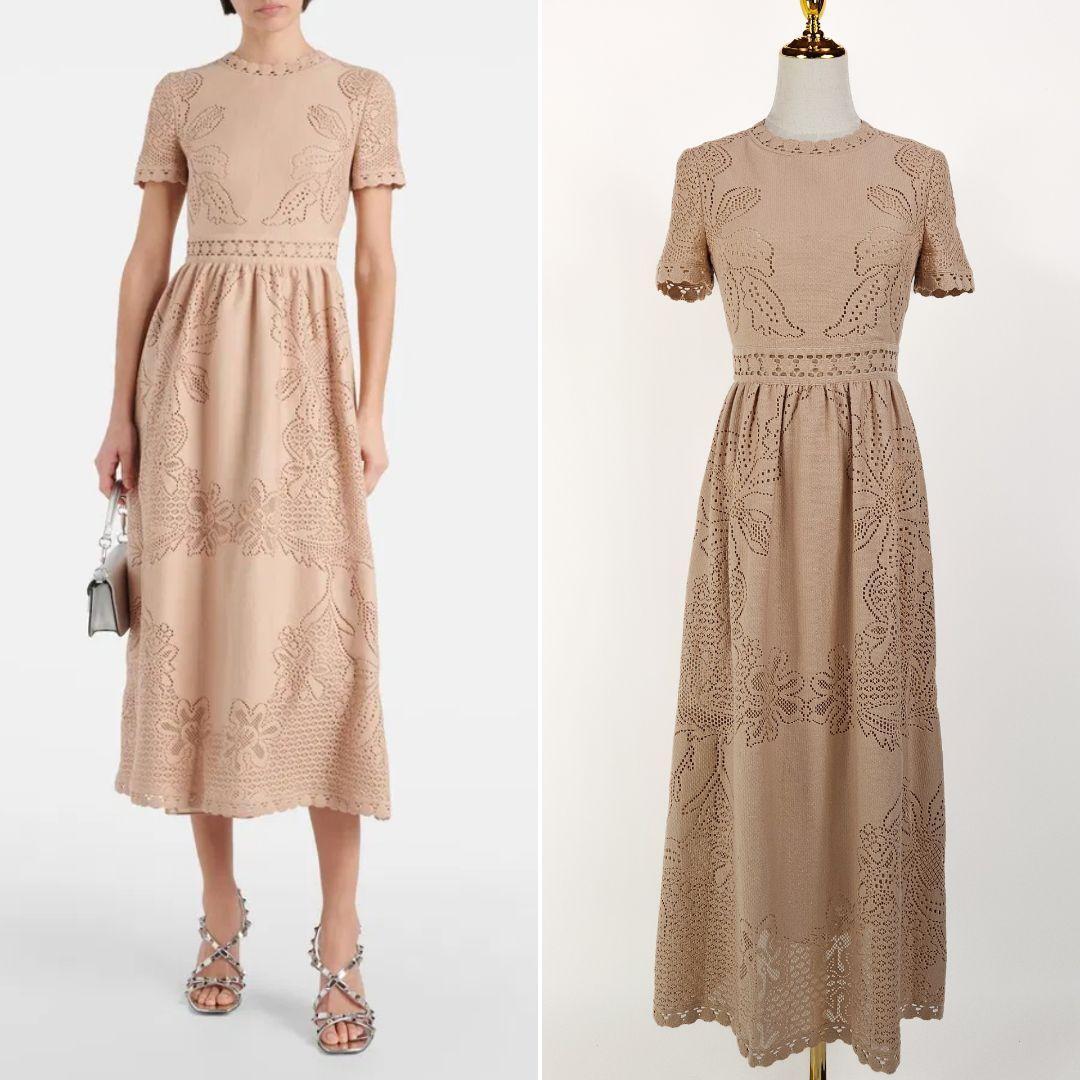 - 【極美品】ヴァレンティノ レース ワンピース カットワーク 38 ベージュ VALENTINO フラワー 花柄 スカラップ コットン