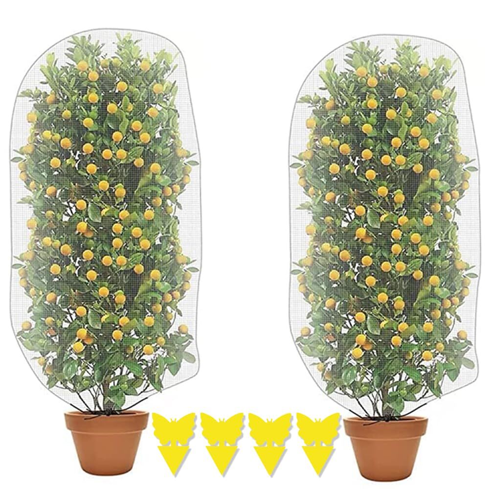 - 保護カバー 2個セット 防鳥ネット メッシュ巾着式 虫鳥除け網 植物保護カバー 通気性 引き紐付き 園芸用ネット 防虫ネット 植物