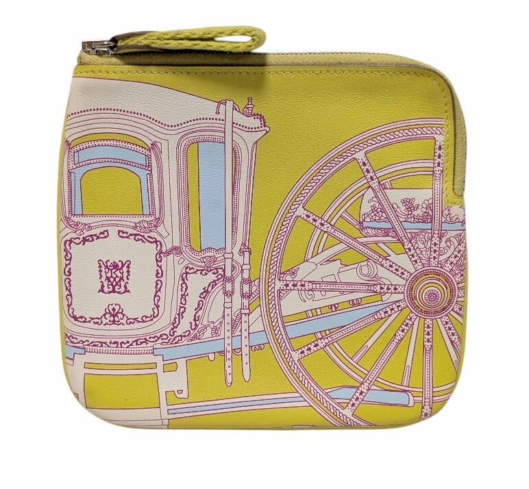 - エルメス カレ ポケット マルチポーチ ポーチ ヴォースイフト HERMES イエロー 馬車柄 レザー 【中古】