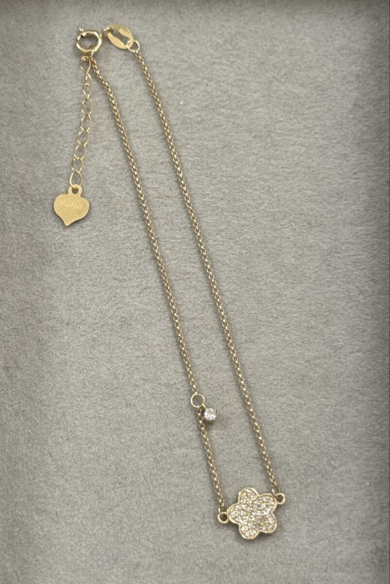 - K18デザインブレスレット 18金 ダイヤモンド付き 小花