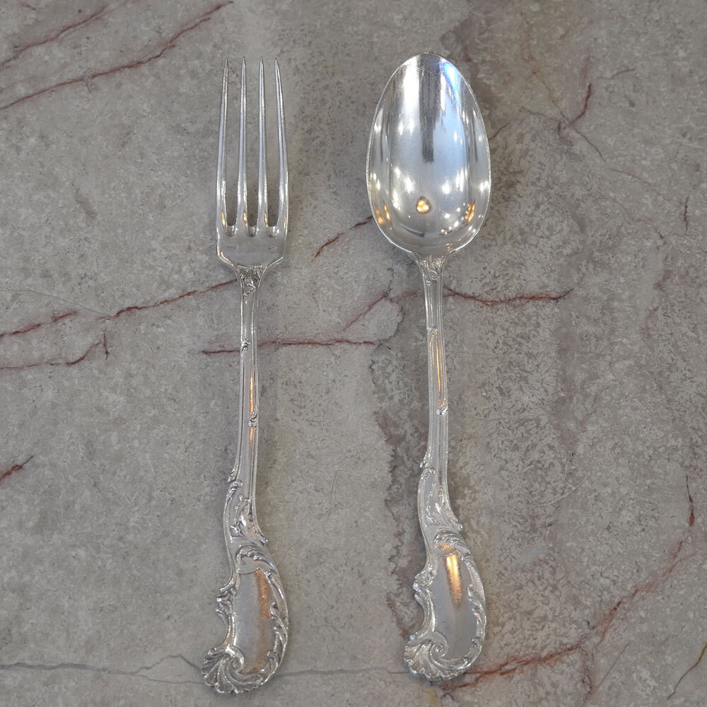 - 【自家製カレーライスが美味しいディナースプーン&フォーク】カトラリーシルバー銀プレートロココロカイユフランスアンティーク