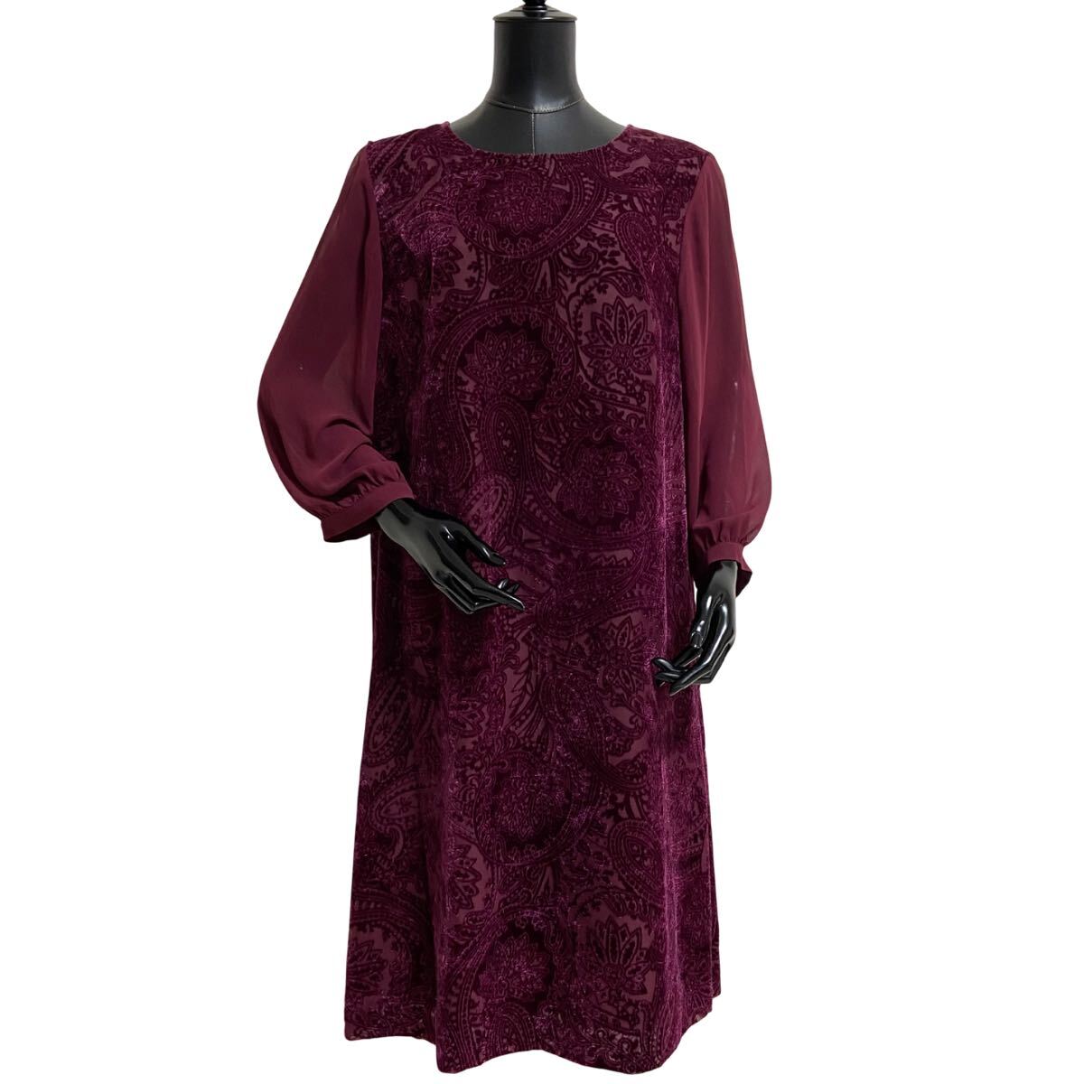 - ローラアシュレイ ペイズリーフロッキー レーヨンベルベット ノーカラーワンピース