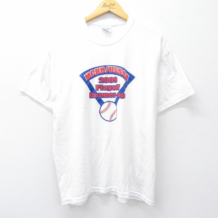 - L/古着 ヘインズ 半袖 ビンテージ Tシャツ メンズ 00s MCBR 野球 クルーネック 白 ホワイト 25aug20 中古