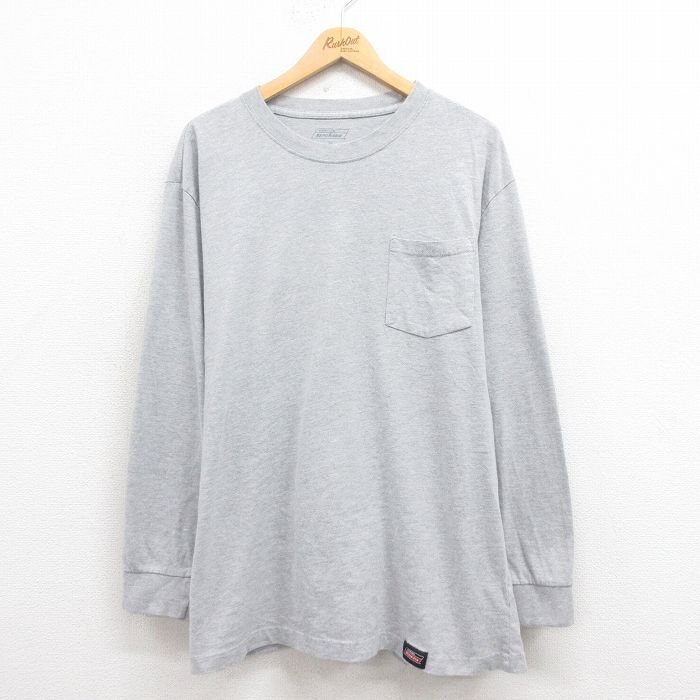 - XL/古着 ディッキーズ Dickies 長袖 Tシャツ メンズ 無地 胸ポケット付き 大きいサイズ クルーネック グレー 霜降り 25aug12 中古