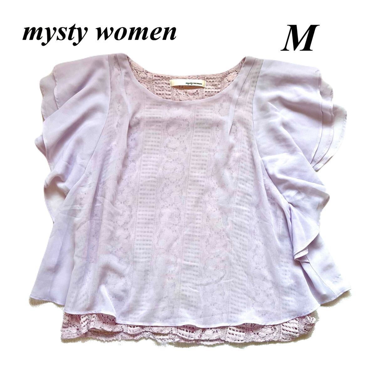 > mysty women ミスティウーマン 半袖 カットソー トップス レース Tシャツ シフォン フリル M パープル レディース
