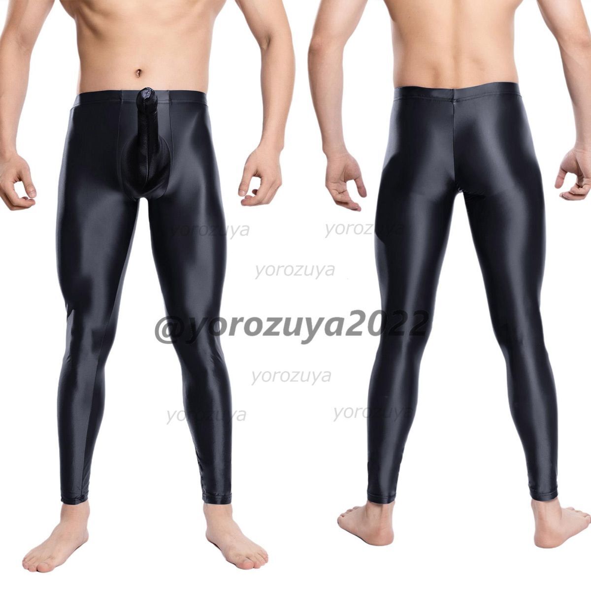 > 181-281-25 ツヤツヤ 光沢 サオ付き アンクル レギンス【ブラック,XLサイズ】男性 メンズ 勃起パンツ ランジェリー ブリーフ ショーツ.1