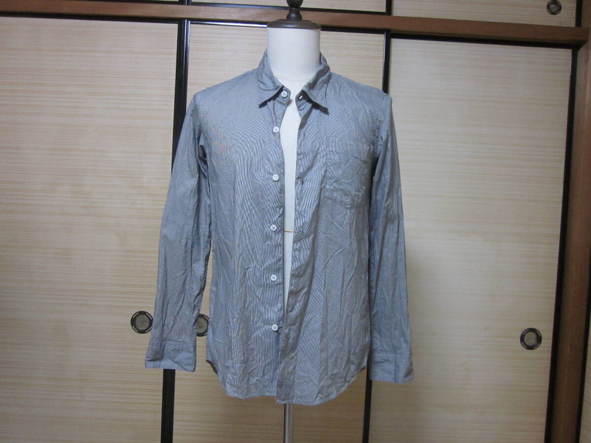 > ☆☆☆【 11/17・大幅値下げ 】WHERE ABOUTS ウェアラ・バウツ:極細ストライプデザインシャツ:MADE IN JAPAN製:サイズ表示 44:送料無料