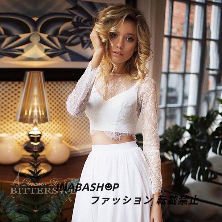 > ウェディングドレス 長袖 セパレートドレス ウエディングドレス スレンダーライン トレーンドレス レディースドレス 結婚式 海外挙式ドレス