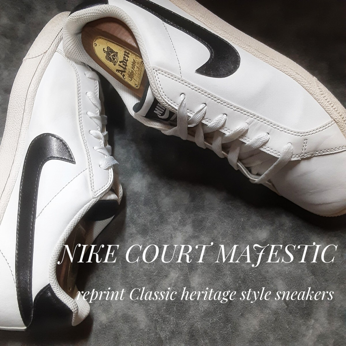 - 最値!希少20年製!ホワイトクロームカラー!復刻クラシックヘリテージスタイル!ナイキ コート マジェスティック高級スニーカー!白黒 27cm