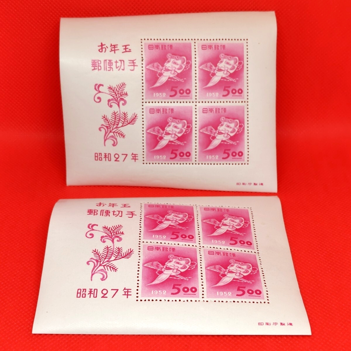 - お年玉郵便切手 昭和27年 銭単位 年賀切手 昭和27年 翁の面 お年玉シート 1952年 印刷庁製造 【切手0817】