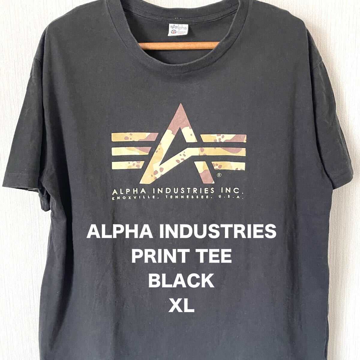 - 【ALPHA INDUSTRIES】アルファインダストリーズ プリントTシャツ ブラック 黒 XL 夏服 半袖 ミリタリー アメカジ 匿名配送 メンズ
