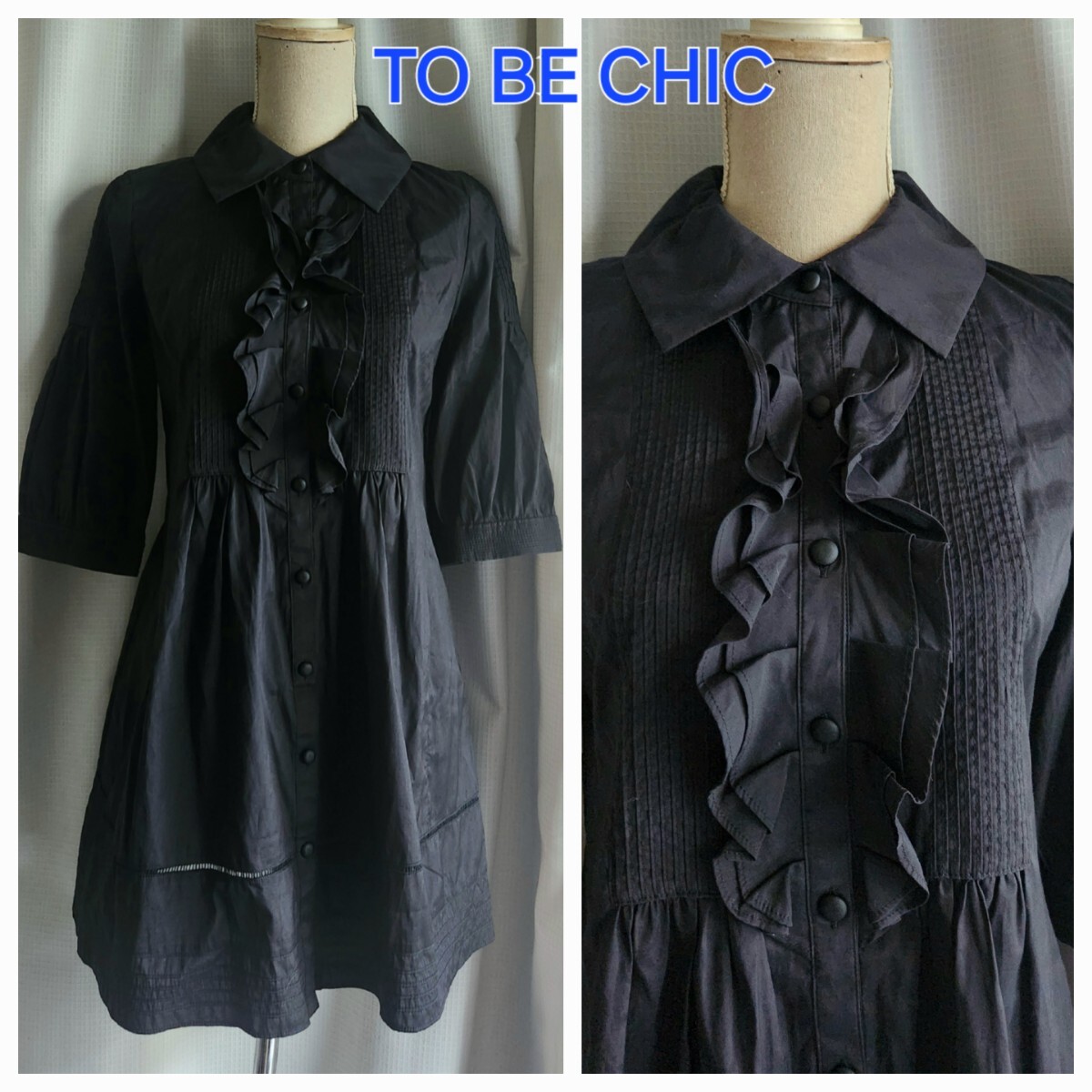 - 大変美品 TO BE CHIC フリル付きロングブラウス チュニック 黒 無地 シャツワンピース