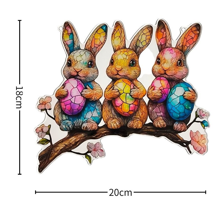 - 【3匹のウサギ】アクリルプレート 飾り サンキャッチャー チェーン付き オブジェ お洒落 壁や窓辺の飾りに◎