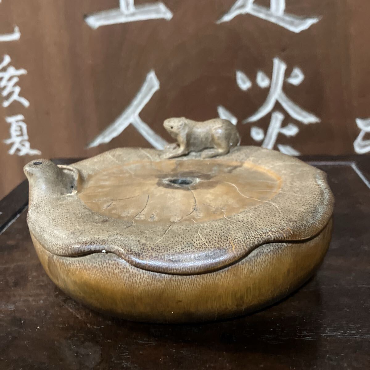 - 【澄今堂】中国美術 唐物 書道具 竹彫刻 水滴 急須台 置物 古美術 旧家蔵出 時代物