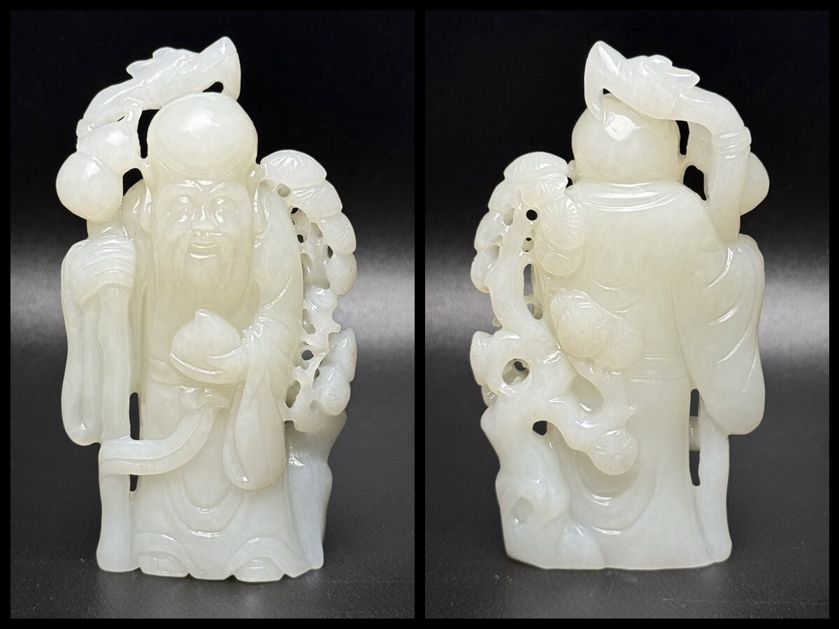 - 「清時代 和田玉 白玉彫り 長寿富貴 壽星」極細工 擺件 中国古賞物 古美術 旧蔵出
