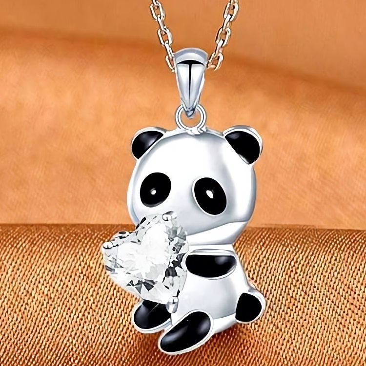- 新品★送料無料★パンダの贈物ハート 金剛石ダイヤ プラチナ仕上925シルバーペンダント誕生日プレゼント旅行夏秋祭連休ギフト国内発送