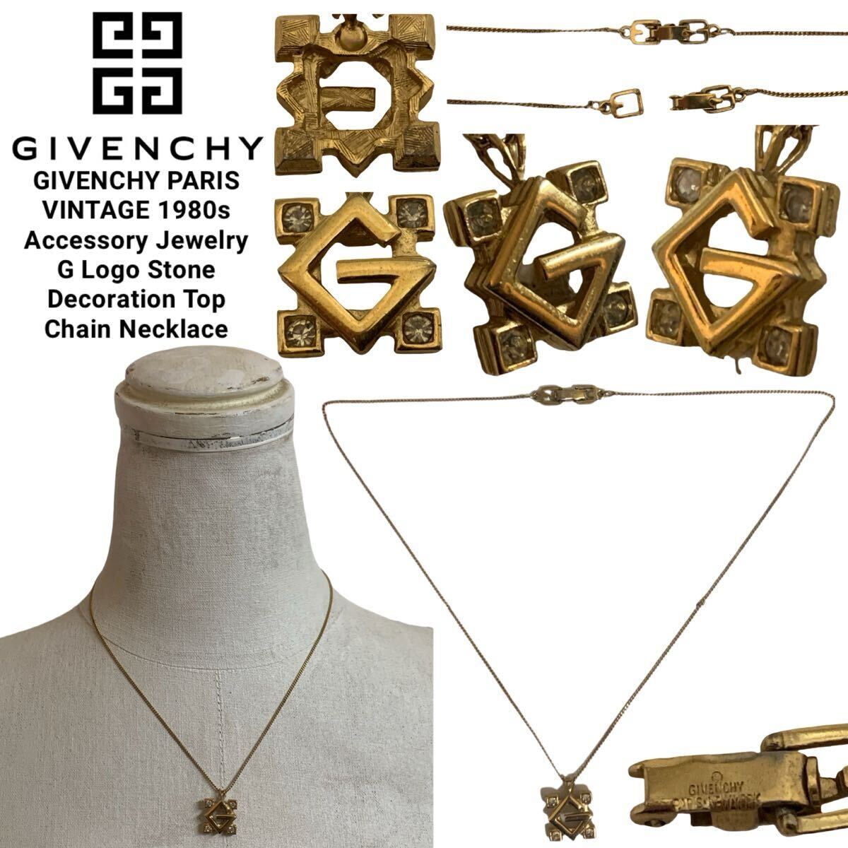- GIVENCHY PARIS VINTAGE ジバンシイ パリス ヴィンテージ 1980s Gロゴ ストーン装飾トップ チェーンネックレス ゴールド Gold アーカイブ