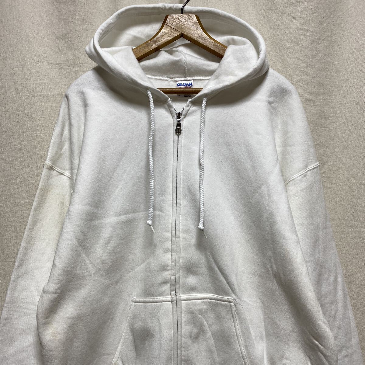 - おそらくデッドストック オールド GILDAN スウェット ジップパーカー ホワイト XL 無地 90s 00s 古着 ヴィンテージ 裏起毛 ギルダン