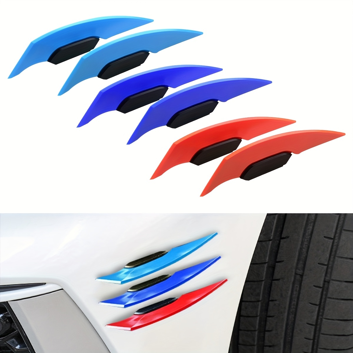 > 6個セット 車 バンパー 傷防止 サイドベント ディフューザー おしゃれ 14.2cm 水色 青 赤 3色 両面テープ フェンダー ダミーダクト t8144