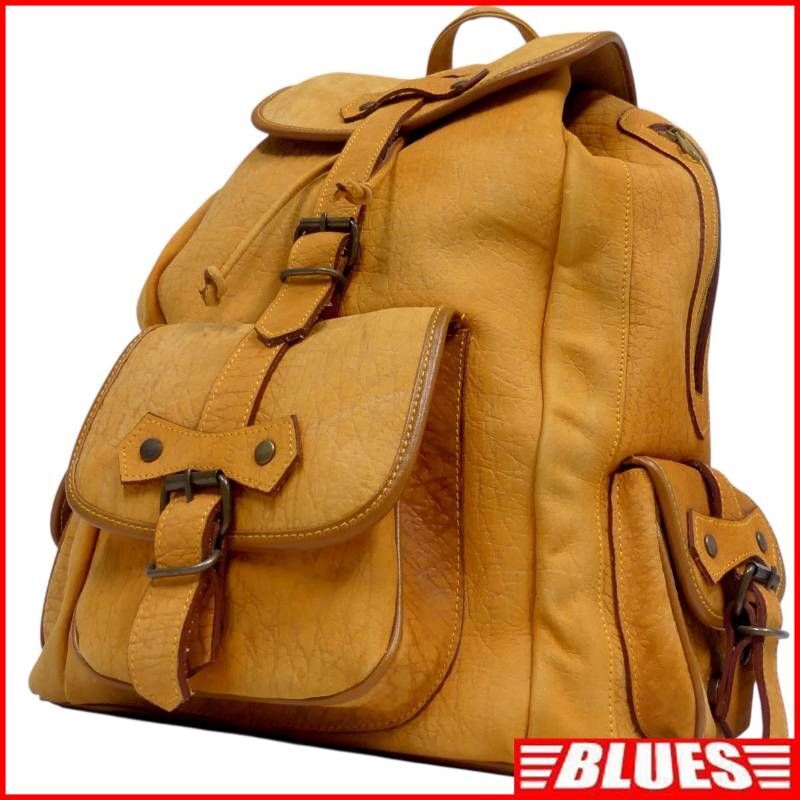 - 即決★ELEPHANT LEATHER★レザーリュック エレファントレザー 像革 メンズ レディース キャメル 本革 バックパック 本皮 旅行 出張 鞄