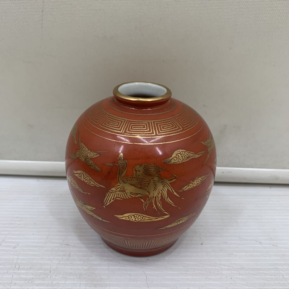 > I☆美品☆花瓶 花器 壺 金彩 九谷焼 花入 インテリア 九谷 永楽 置き物 鶴 骨董品 アンティーク ヴィンテージ フラワーベース 置物 つぼ
