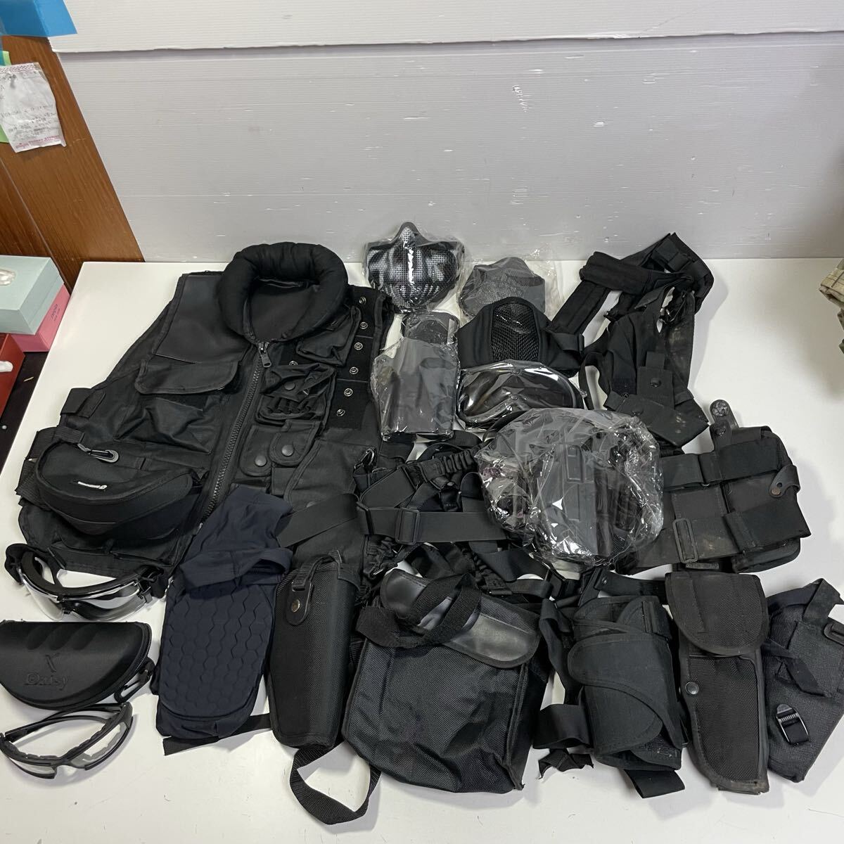 > ◆S59 サバゲー 装備 おまとめ ブラック ゴーグル タクティカルベスト SWAT ガンホルダー 等々