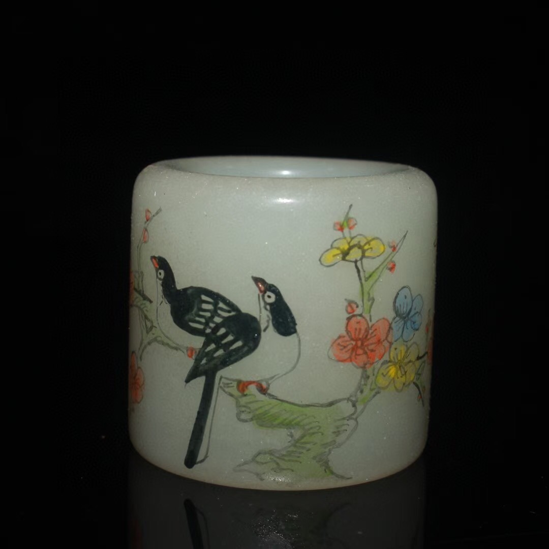 - 【超珍館蔵】琉璃製 細密彫 描金 彩繪 花鳥紋 指輪 根付 裝身具 古賞物 古董品 古美術品 時代物 旧家蔵出 稀少珍蔵品